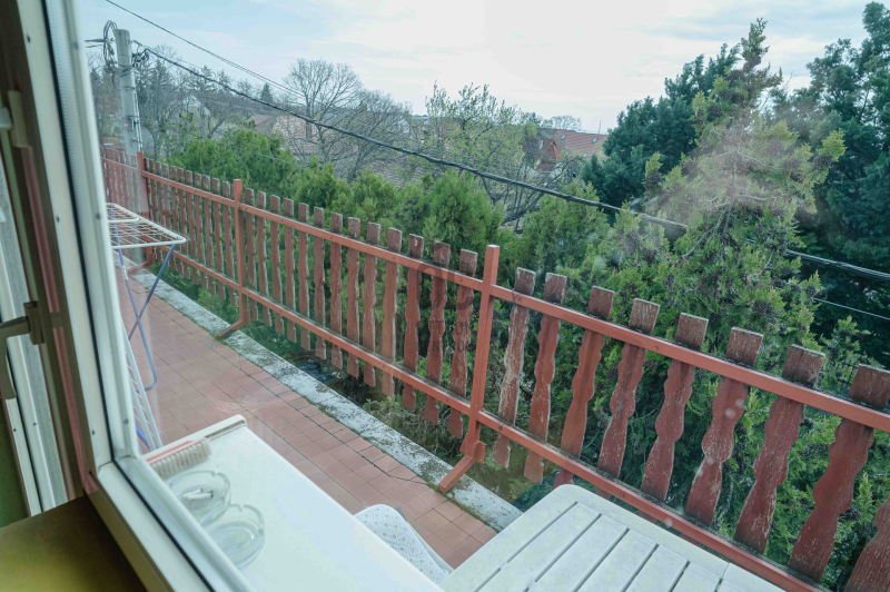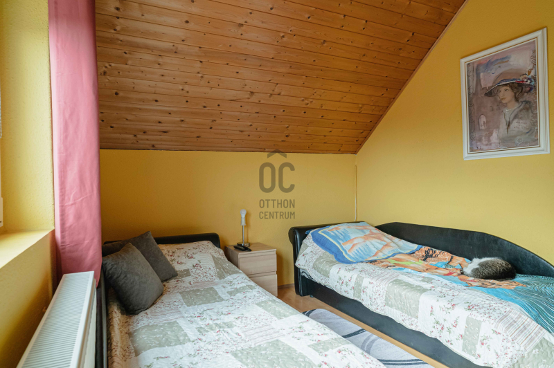 - emelet, mely külső lépcsővel közelíthető meg, és teljesen szeparált: 3 hálószoba (14.8, 12.9, és 14.6 nm) , nappali (20.4nm), konyha-étkező (6.7nm), fürdőszoba (3.2nm), közlekedő (9.3nm), szélfogó (2.5nm), erkély (13.3nm)