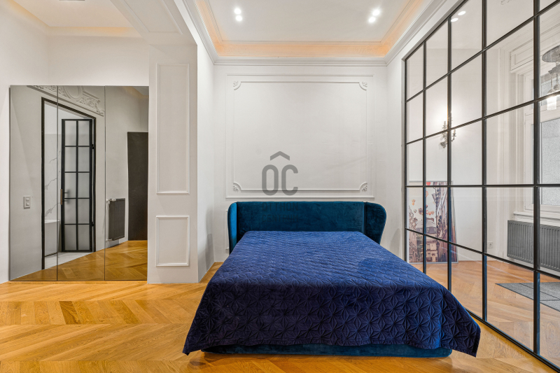 Az ingatlan a klasszikus polgári eleganciát ötvözi a modern luxussal: a felújítás során a belső terek letisztult, kifinomult megjelenést kaptak, a gondosan kiválasztott anyagok és részletek pedig minden igényt kielégítő minőséget képviselnek. A lakás rendkívül világos, napfényes, a nagyvonalú terek és az átgondolt kialakítás pedig exkluzív életérzést biztosít.