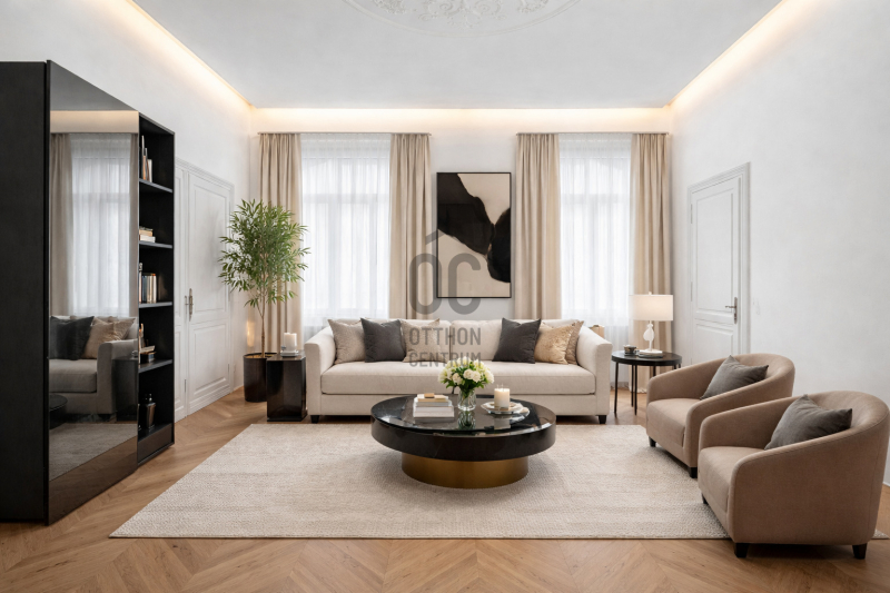 Az ingatlan a klasszikus polgári hangulatot ötvözi a modern luxussal: a felújítás során a belső terek letisztult, elegáns megjelenést kaptak, a gondosan megválasztott anyagok és részletek pedig magas minőséget képviselnek. A lakás világos, napfényes, a tágas terek és az átgondolt kialakítás pedig maximális komfortot biztosítanak.