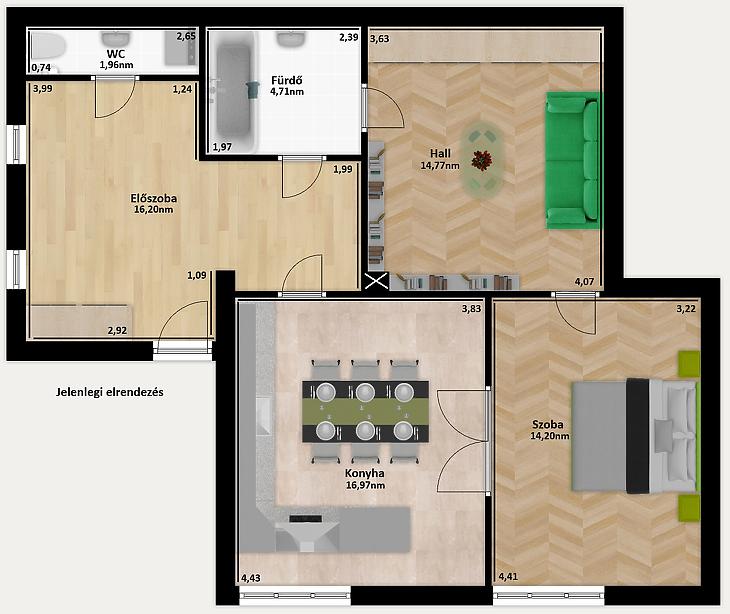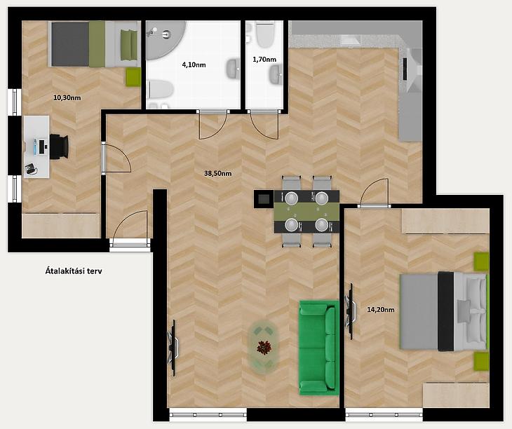 A lakáshoz tartozik egy saját, zárható 5,31nm-es tároló is, melyet a vételár tartalmaz. Kocsibeálló kialakítására a hátsó udvarban van lehetőség.