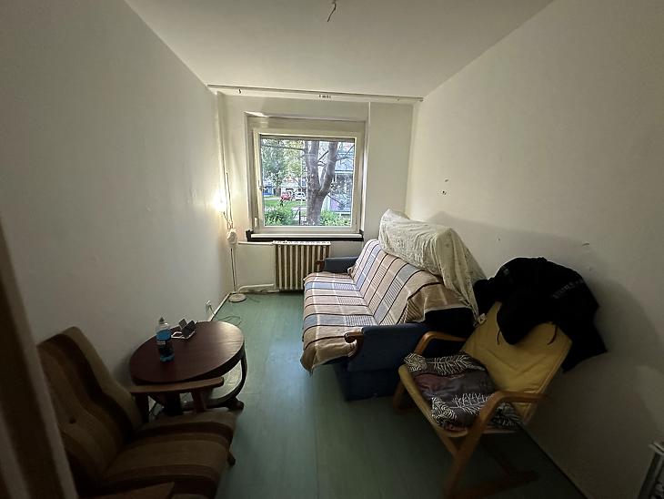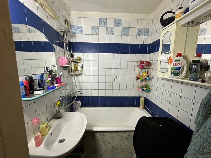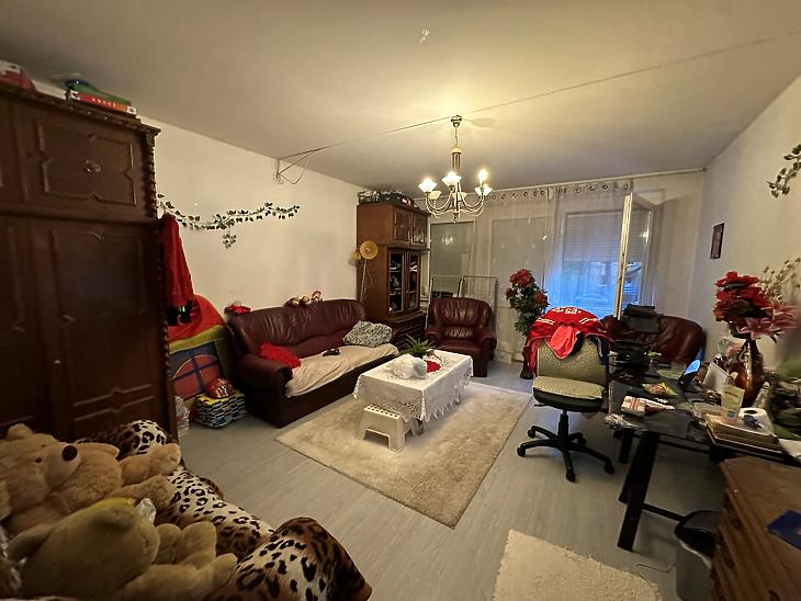 Eladó 68 nm-es, 3 szobás, erkélyes, felújítandó, földszinti lakás Budapest X. kerületében, az Újhegyi Lakótelepen.
