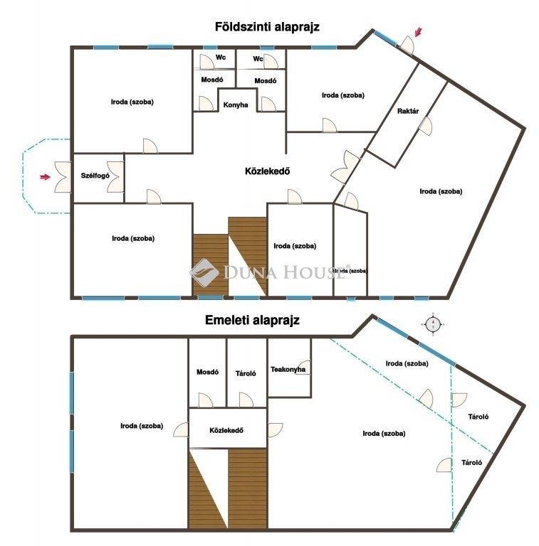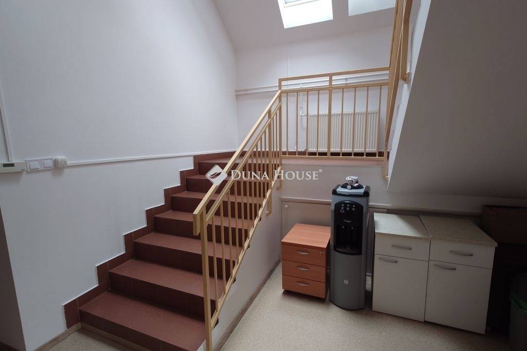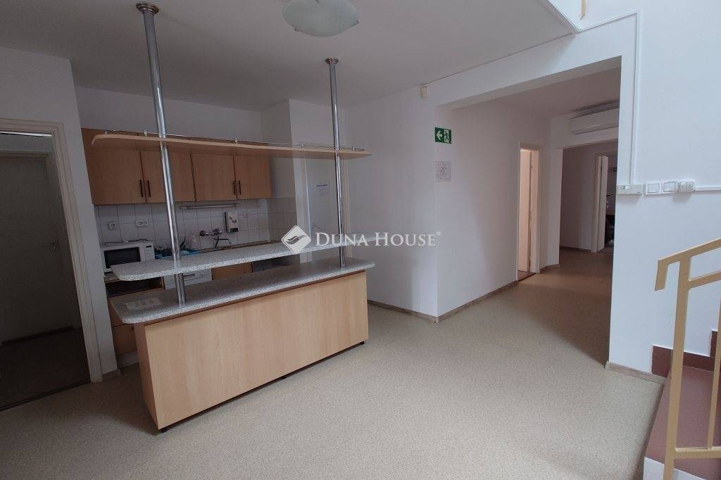 7 szoba (iroda), tágas közlekedők/közösségi tér, konyha, 2 mosdó, 2 WC.