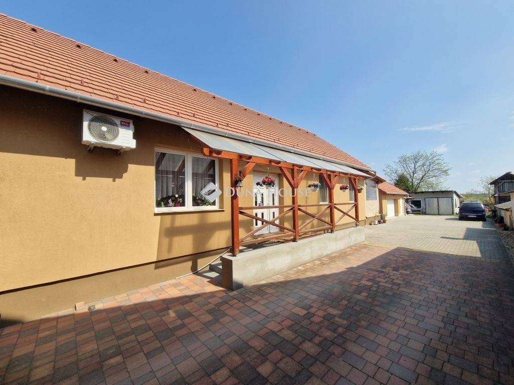 Vaskúton eladó 125 m2-es (+beépíthető tetőtér), hőszigetelt, klimatizált, vállalkozásra is alkalmas családi ház 903 m2 telekkel, hatalmas terasszal, szerelőaknás garázzsal, műhellyel és féltetővel.2018-ban épült, LEIER 38-as okostéglából 1,40-es hőszigetelt C20-as beton alapra. A belső válaszfalak 20 cm-es téglából készültek. A tető Tondach betoncseréppel fedett. A homlokzat EPS hőszigetelt, illetve nemes vakolattal ellátott.A házban átgondolt tervezéssel tágas nappali, konyha-étkező, 3 szoba, közlekedő, fürdő-wc káddal és tusolóval, külön wc (mosókonyha) és előtér került kialakításra, ahol a kazán és puffer tartály is helyet kapott.A tetőtér beépíthető, bruttó 85 m2 mely nagyrészt kivitelezésre is került már. 50 cm-es födém szigeteléssel+20 cm-es gerendák közötti szigeteléssel rendelkezik, villany már fenn van, feljáró is kész (a nappalinál is betervezett a lépcső), ablakok beépítve, tűzfal belül szigetelt 5 cm EPS anyaggal, víz és szennyvíz megvan hol hozható fel. Külön lakrészként, illetve nagyobb családnak is ideális lehet, mivel a lépcső jelenleg a hátsó előtérből került kialakításra.A házhoz elöl 7,5 m2-es, hátul 31 m2-es fedett terasz készült, és két bejárattal rendelkezik. A hátsó teraszhoz leszerelhető ponyva készült, így az minden évszakban védett.A nyílászárók korszerű műanyagok (a hátsó bejárati ajtó Borovi fenyő), az ablakok 2 rétegű hőszigetelt üvegezésűek alukeretes szúnyoghálóval, redőnnyel, márvány párkányokkal.A házban radiátoros központi fűtés kialakított, melyben 50 kW-os Hajdu vegyes tüzelésű kazán 1000 literes puffertartállyal biztosít hatékony és gazdaságos működést. A meleg vizet Hajdu villany bojler szolgáltatja.A kellemes hőmérsékletről TCL hűtő-fűtő klímaberendezés gondoskodik.A kiépített villamos hálózat 1x32A (40A FI relével), házon belül minden helyiség külön biztosított.A kélyelmes bejutás a kamerás beléptetőrendszer mellett elektromos kapun keresztül lehetséges, mely mellé személybejáró is készült így áramszünet esetén is akadálytalan a bejutás az ingatlanba. A ház és terasz mögötti részen kapott helyet:- árnyékos kiülő rész- a 30-as Poroton téglából épült 36 m2-es hőszigetelt, elektromos Hörmann kapuval, szerelőaknával ellátott dupla garázs (szintén személybejáróval), melynek tetőtere tárolási célra is alkalmas- 30 m2-es féltető, autóbeálló (parkolásra, tárolásra, stb. kiváló)- 75 m2-es műhely, mely kiváló vállalkozás számára, hobbi célra, összejövetelekre, stb.- füves udvarA telek praktikusan kialakított, az udvar térkövezett, mely könnyen karbantartható, miközben esztétikus és jól használható. A vételár tartalmazza a konyhabútort és a beépített gépeket: Bosch és egyéb márkák, elektromos tűzhely, sütő, páraelszívó. Ha egy valóban átgondolt kialakítású, minőségi anyagokból épült, azonnal költözhető otthont keres, amely hosszú távon is kényelmes és rugalmas életteret biztosít, ez az ingatlan kiváló választás.A csendes, rendezett utcában elhelyezkedő ház ideális azok számára, akik a nyugodt vidéki életet ötvöznék a városi közelség előnyeivel. Tökéletes választás azok számára, akik kompromisszumok nélkül keresnek minőséget és bővítési lehetőséget egy helyen.Vaskút egy nyugodt, barátságos település Baja közvetlen közelében, ahol a vidéki élet csendje és biztonsága találkozik a városi infrastruktúra gyors elérhetőségével. A község rendezett, élhető környezetet kínál, ideális választás családok és nyugalomra vágyók számára.Ár: 69 MFtÉrdeklődés esetén keressen bizalommal, nézzük meg együtt!