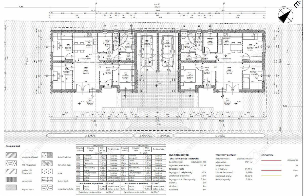 Az épület Ytong téglából épül, 10 cm vastag grafitos hőszigeteléssel. A tető 30 cm üveggyapot szigetelést kap, a padló pedig 10 cm lépésálló szigeteléssel készül. A telek körül 3D kerítés kerül kialakításra. Az ár kulcsrakész állapotra vonatkozik.