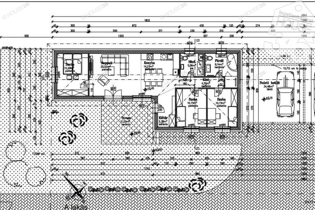 34,5 m2 fedett gépkocsi beálló
