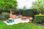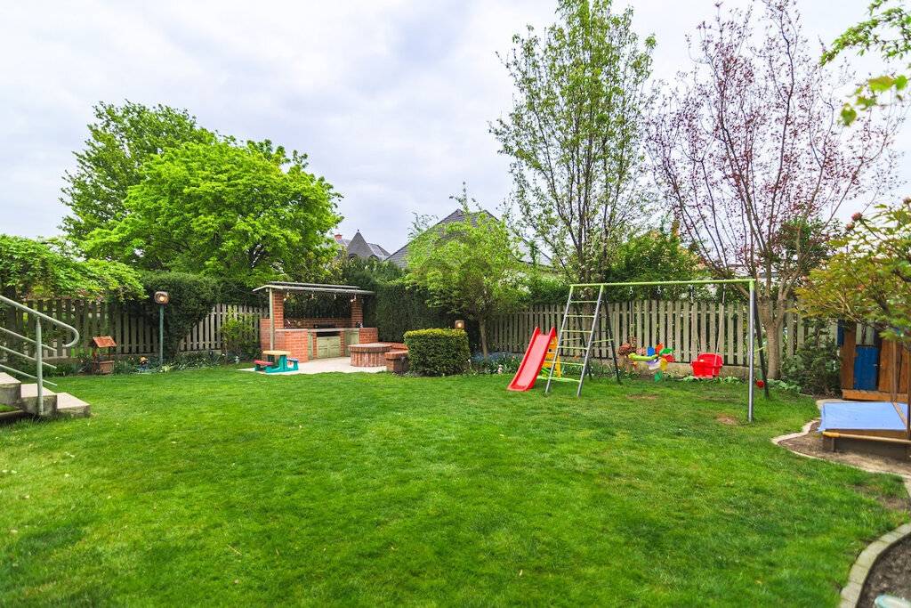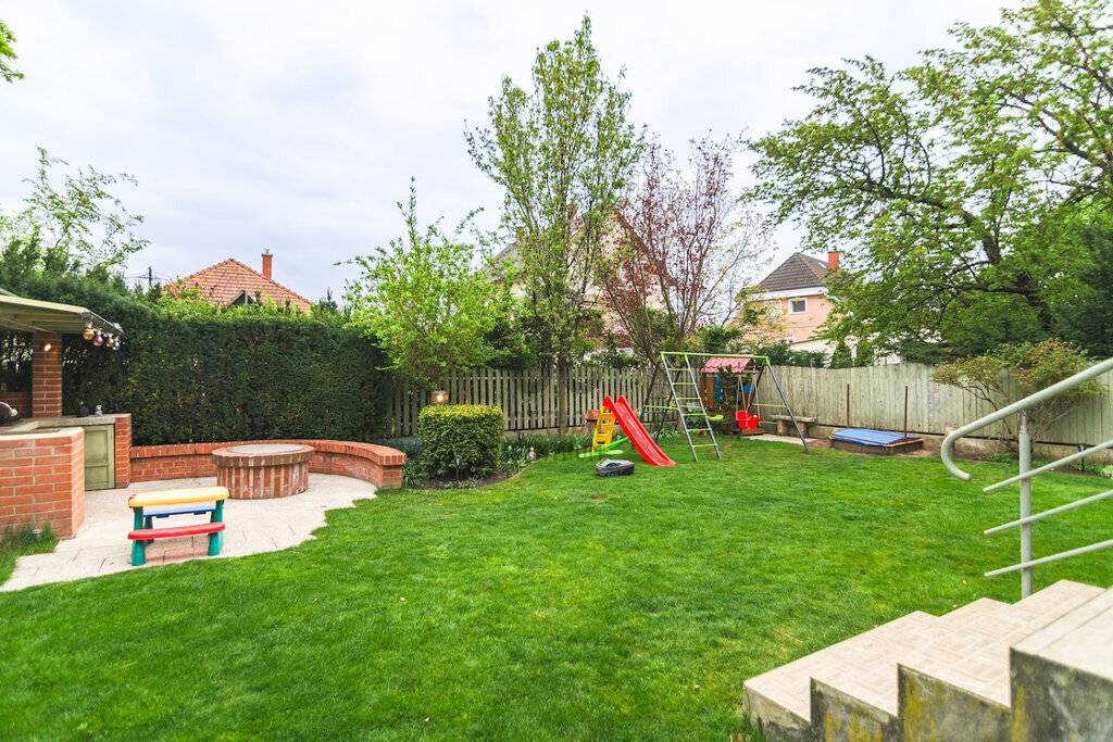 A házhoz tartozó 431 nm-es telek rendezett kerttel rendelkezik, ahol egy automata öntözőrendszer (fúrt kútból) segít fenntartani a zöld környezetet, valamint kerti konyha, sütögető és kis játszótér is ki lett alakítva. A 15 nm-es terasz ideális helyszín a nyári estéken való pihenéshez.