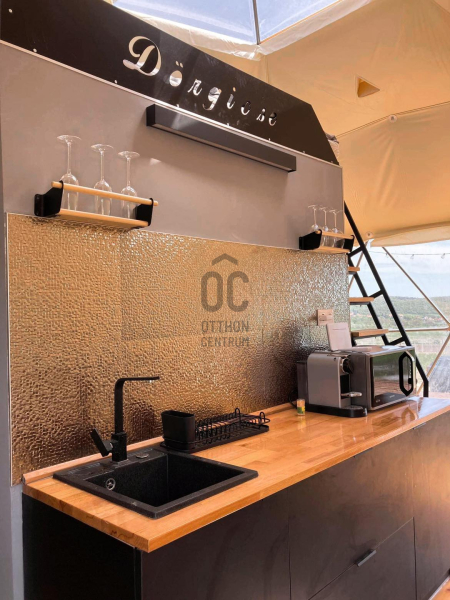 Felszereltség: Modern galéria 4 m²-es ággyal és tetőablakkal a csillagleshez, konyha, zuhanyzó, wifi, klíma és elektromos fűtés.