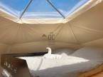 Geodome sátor: 27 m²-es, teljesen szigetelt, fűthető és hűthető (F-domes technológia), amely a legzordabb időjárásban is komfortos.