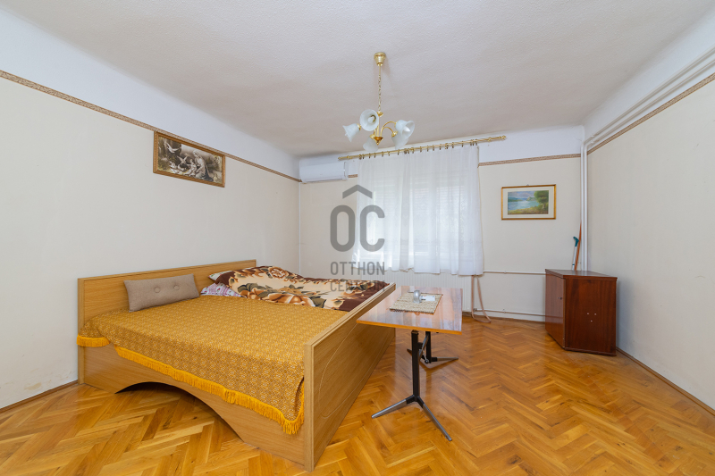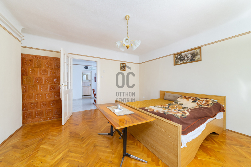 Mogyoródon csendes mellékutcában, családi házas kertvárosi környezetben kínálunk megvásárlására egy 800 nm-es saroktelken álló földszintes kialakítású 3 szobás családi házat garázzsal, pincével, nyári konyhával, tárolókkal. A melléképületben egy kisebb lakás is kialakítható. A lakóépületet 2005-ben felújították, a tetőszerkezet is megújult, a cserepeket lecserélték, új fűtésrendszer lett kiépítve, az elektromos hálózat, vízcsövek is cserélve lettek, konyha, fürdőszoba burkolatok, szaniterek, bútorzat is fel lett újítva. A lakás belső elosztása kiváló: a nagy méretű, fedett, kertre néző teraszról nyílik a bejárat, a tágas előszobában van hely a kabátok, cipők tárolására. A konyha-étkezőből nyílik egy kamra, a házban további két nagy méretű szoba, egy nappali, és egy nagy fürdőszoba került még kialakításra. A ház nagyobb telekkel is eladó, ebben az esetben 1417 nm-es telek fog tartozni a házhoz. Erre a méretű telekre még egy kb. 170 nm-és lakóház építhető. Így a hirdetési ár 116.9 M Ft. Az ingatlan üres, tehermentes, akár azonnal birtokba vehető.