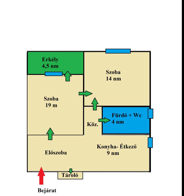 Két külön életvitelű személy számára is alkalmas, mert a két szoba teljesen szeparált egymástól.