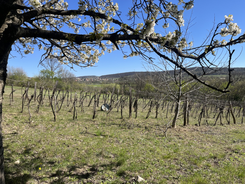 Növényzet: szőlő és termő gyümölcsfák (cseresznye, alma, dió)