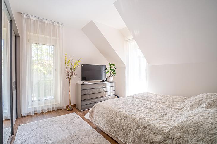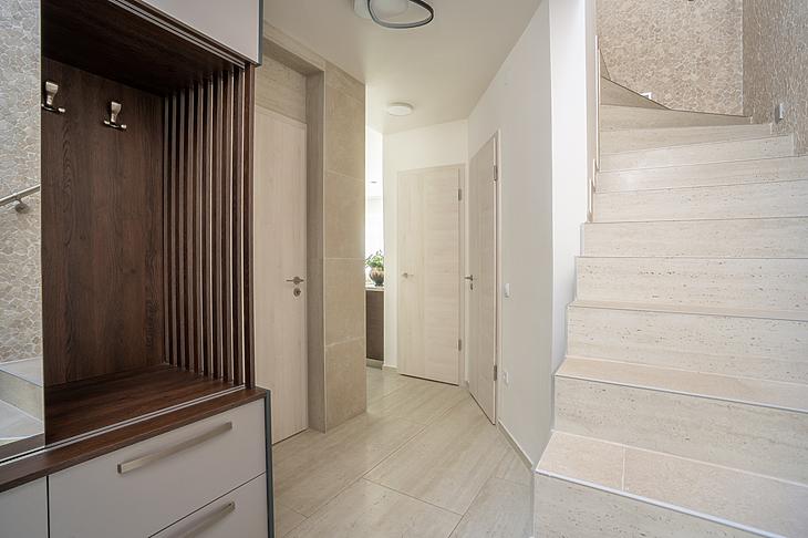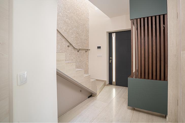 A házba elektromos redőny, és hűtő/fűtő klíma is beszerelésre került az elektromos kapu és kamerarendszer mellett.