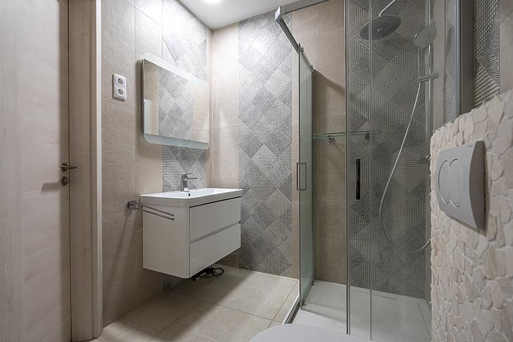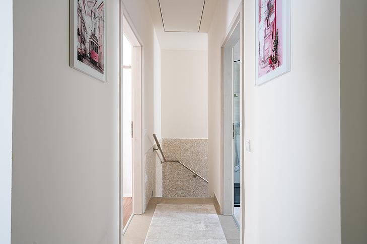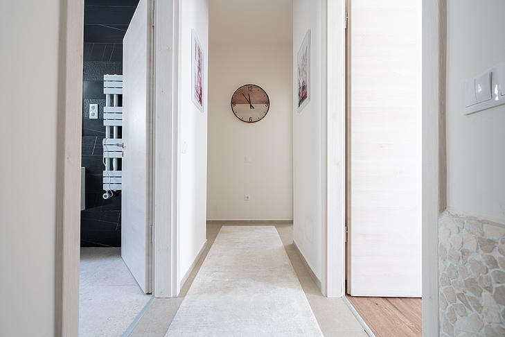 A szobákban laminált parketta, a vizes helyiségekben járólap található.