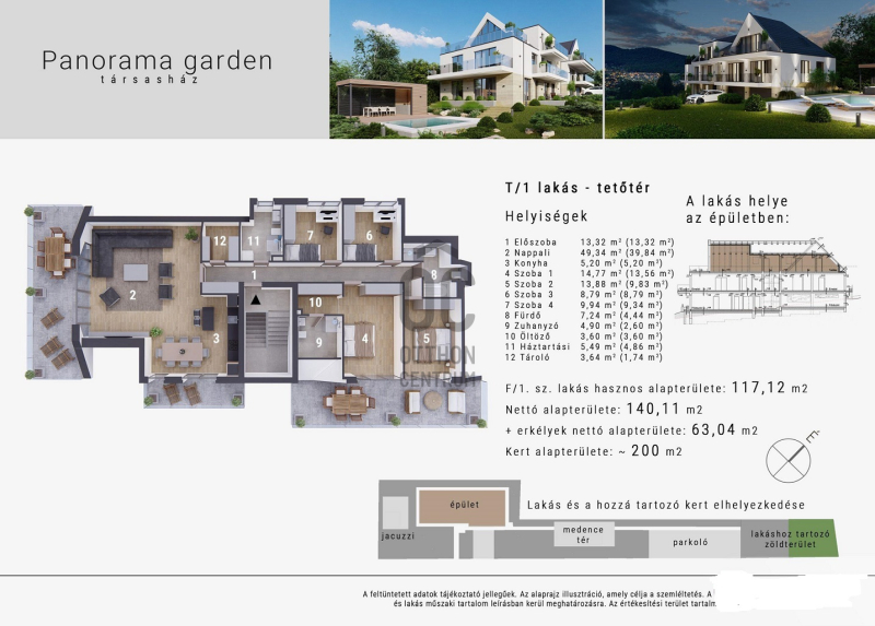 2. lakás 1. emelet: nettó: 101nm + 30nm terasz + 200nm saját kert,